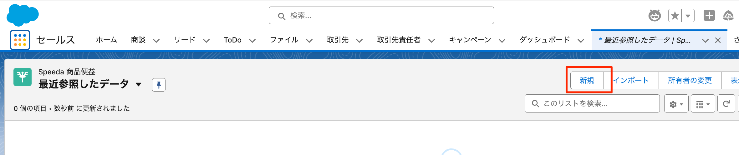 - Salesforceアプリケーションランチャーから「Speeda 商品便益」を開く