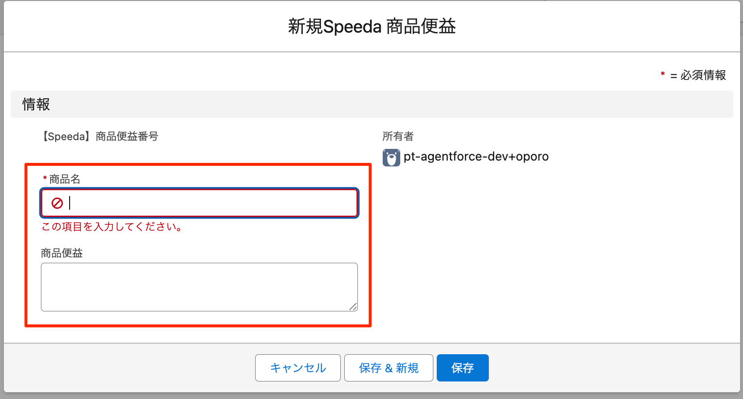- 商品名と商品便益を記入し、保存(複数プロダクト登録する場合は、保存&新規で続けて別プロダクトの登録)